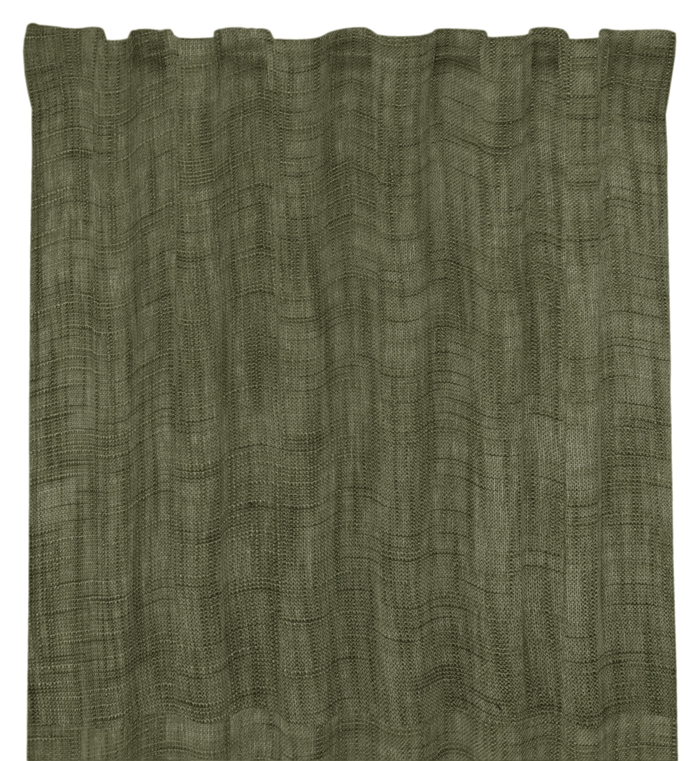 Gardin Bruce från Redlunds är tillverkad i ett tyg med vacker slubeffekt i en fin khakifärgad nyans. Den speciella vävtekniken med trådar i varierande tjocklek skapar en diskret textur och en unik struktur som ger rummet en varm och inbjudande känsla. Ofållad nedtill, kan enkelt justeras med snabbfållningsband för perfekt längd.