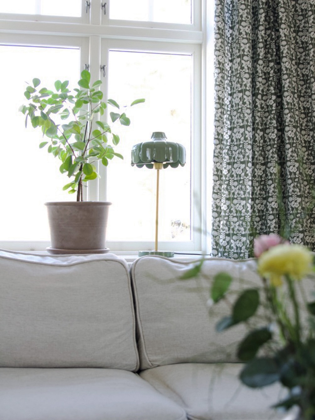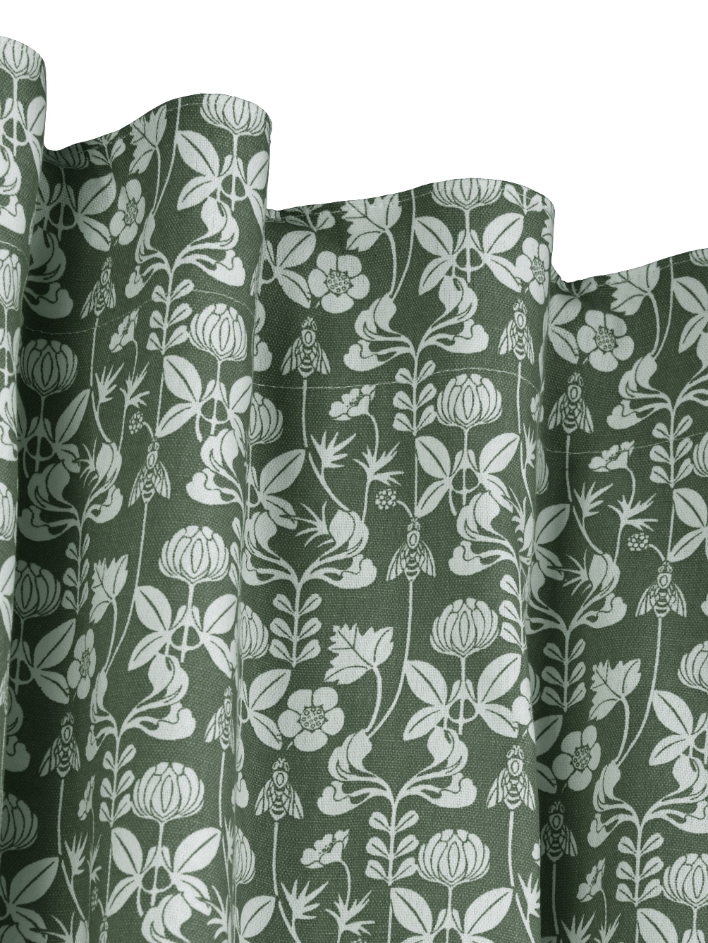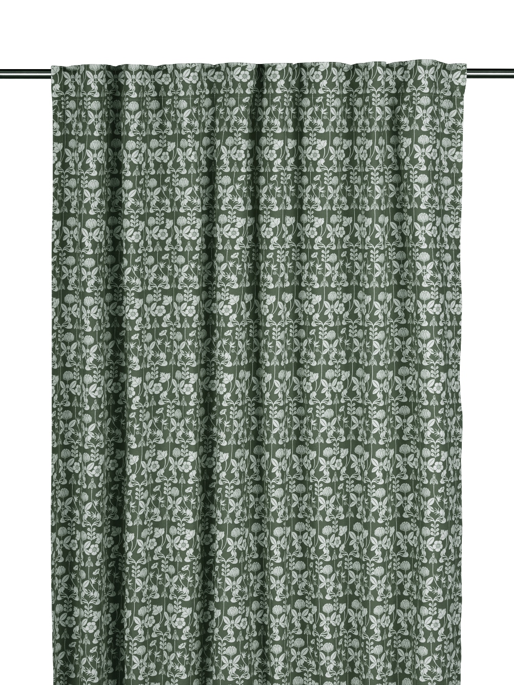 Gardin De Mina från Svanefors är en tidlös klassiker i svensk formtradition, tillverkad i 100% bomull. Mönstret, skapat av konstnären Carl Larsson har ett vackert tryckt botaniskt mönster på en mossgrön botten, som ger hemmet en harmonisk känsla. Gardinen har multiband i ovankant och fållade långsidor och overlocksöm i nederkant. Säljes i 2-pack. Storlek: 140x280 cm.