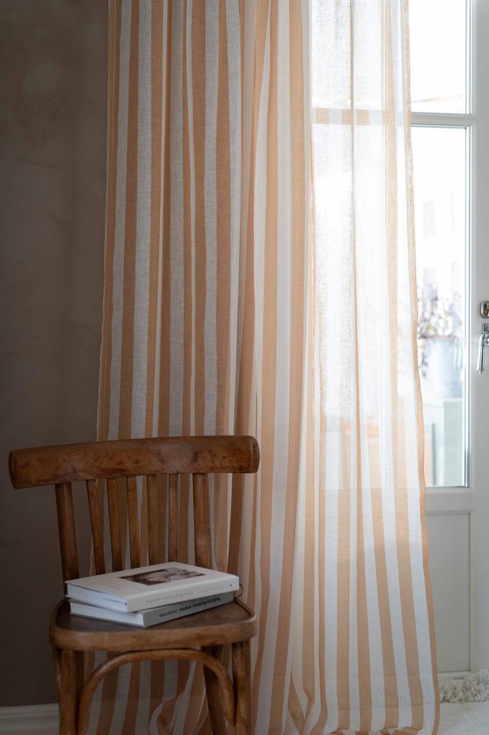 Gardin Disa från Fondaco har en stilren, klassisk design med breda, vertikala ränder som ger rummet en känsla av rymd och höjd. Den mjuka färgskalan med gula ränder skapar ett harmoniskt intryck som passar både moderna hem och lantliga miljöer. Tyget är skirt och släpper igenom ljuset på ett mjukt sätt, vilket ger ett behagligt och luftigt intryck i rummet. Storlek: 135x280 cm. Säljes i 2-pack.
