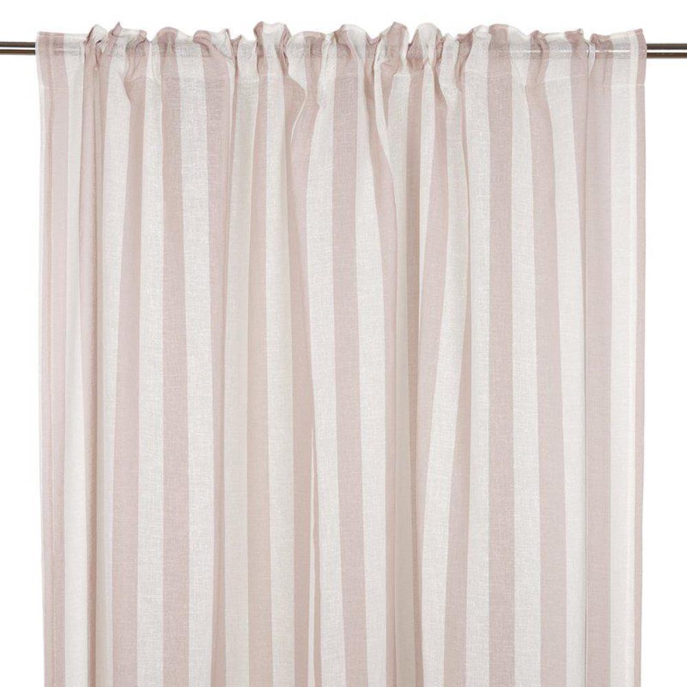 Gardin Disa från Fondaco har en stilren, klassisk design med breda, vertikala ränder som ger rummet en känsla av rymd och höjd. Den mjuka färgskalan med rosa ränder skapar ett harmoniskt intryck som passar både moderna hem och lantliga miljöer. Tyget är skirt och släpper igenom ljuset på ett mjukt sätt, vilket ger ett behagligt och luftigt intryck i rummet. Storlek: 135x280 cm. Säljes i 2-pack.