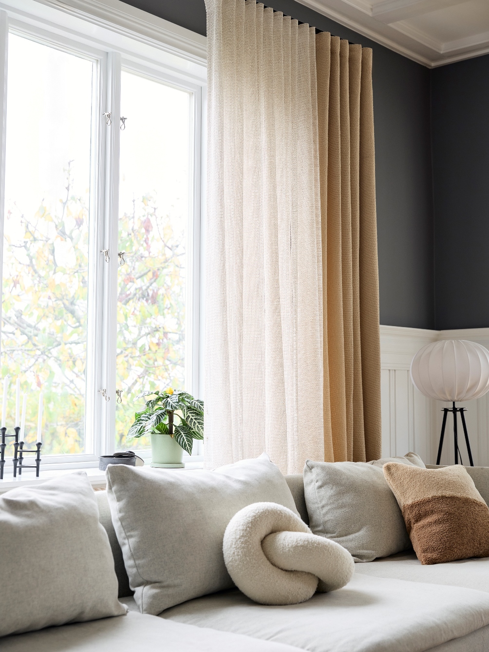 Multibandet gör att gardinen kan hängas på flera sätt – både på gardinstång och gardinskena: