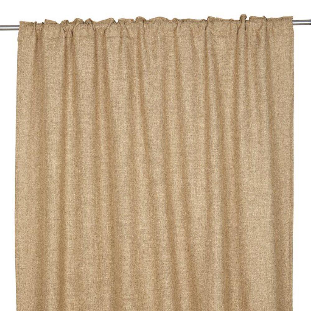 Gardin Rio från Fondaco har en elegant design och multiband, tillverkad i havrefärgad polyester med ett tyg som faller vackert. Det tunga och mjuka materialet ger en lyxig look och hänger följsamt runt fönstret som är perfekt för en stilfull och ombonad inramning. Gardinen är ofållad i botten – använd gärna snabbfållningsband för att enkelt justera längden efter dina önskemål. Storlek: 140x280 cm. Tvättråd: Skontvätt 30°C. Säljes i 2-pack.
