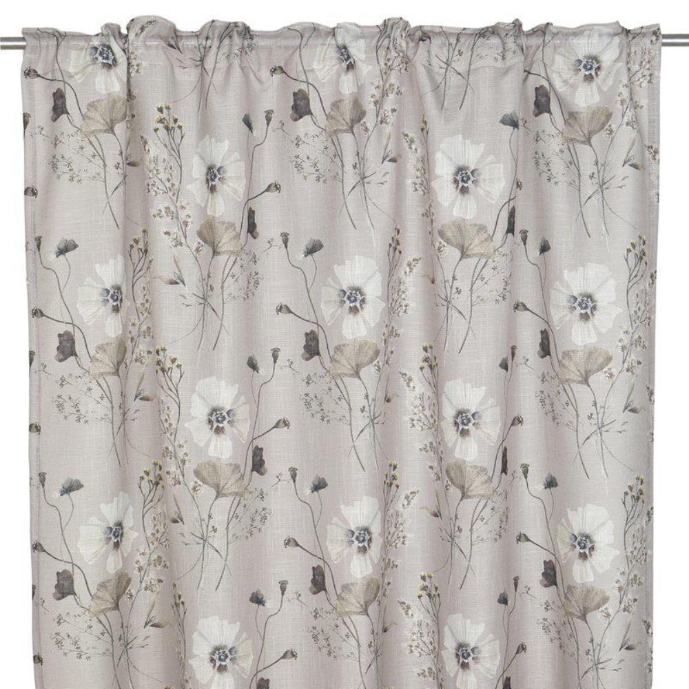 Gardin Sabine från Fondaco har ett vackert blommönster på en linfärgad botten som skapar en harmonisk känsla i rummet. Gardinen släpper igenom ljuset och ger ett behagligt ljus och är perfekt för en ljus och inbjudande atmosfär. Multiband gör den enkel att hänga upp. Längderna är ofållade i botten – använd gärna snabbfållningsband för enkel justering. Storlek: 135x250 cm. Tvättråd: Skontvätt 30°C. Säljes i 2-pack.