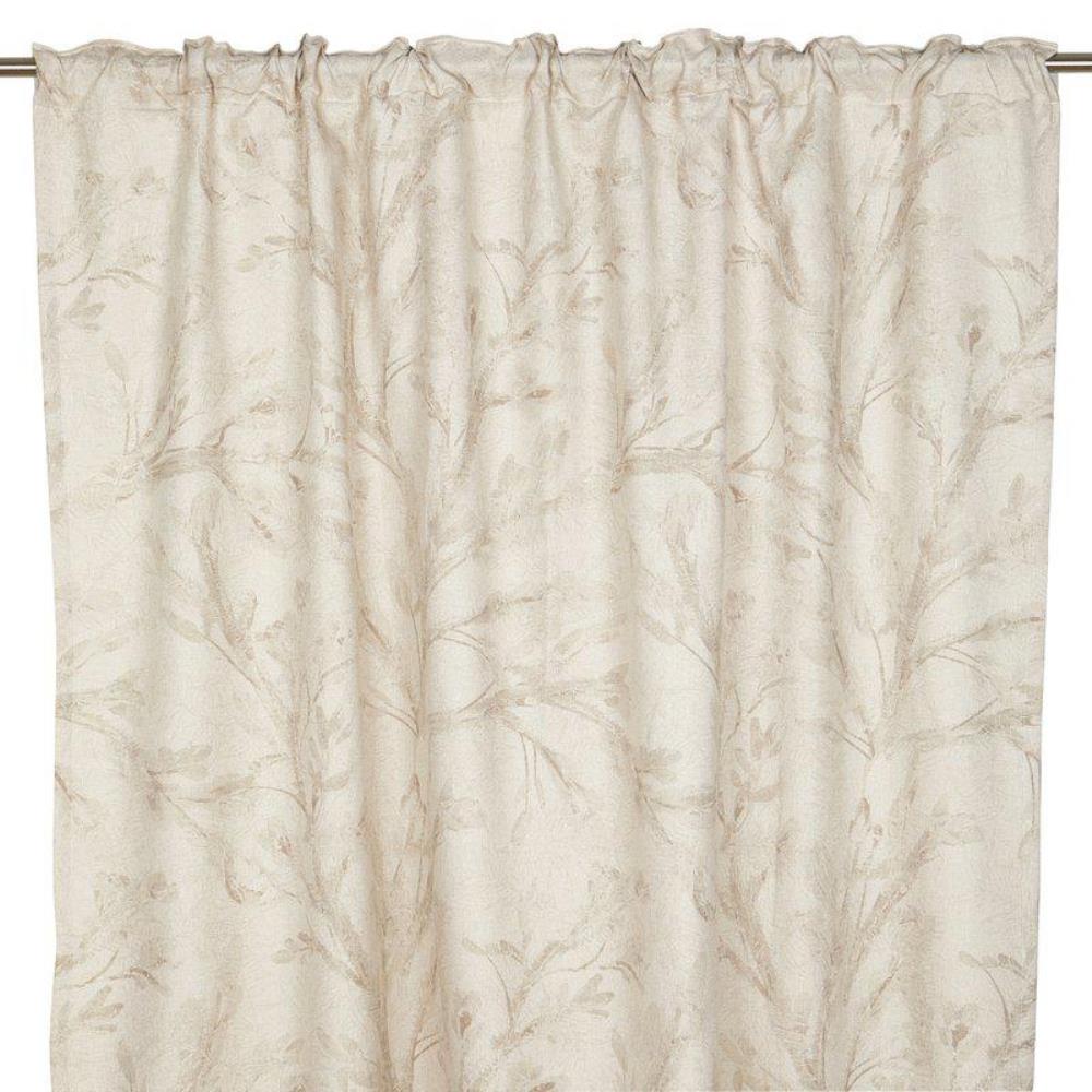 Gardin Elaine från Fondaco har en naturnära design med multiband och ett vackert mönster av blommor och blad i linfärgat. Den harmoniska designen skapar en rogivande känsla och släpper in ljuset på ett mjukt och behagligt sätt. Gardinen har en tidlös design som ger rummet en naturlig elegans. Längderna är ofållade i botten – använd gärna snabbfållningsband för enkel justering. Storlek: 140x250 cm. Säljes i 2-pack. Tvättråd: Skontvätt 30°C.