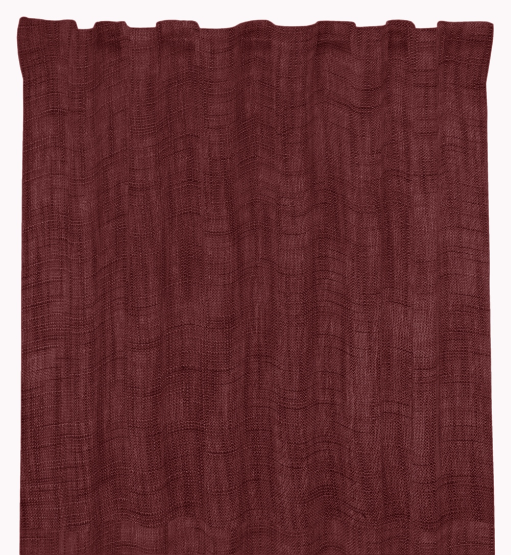Gardin Bruce från Nina Royal är en elegant multibandsgardin i en vacker vinröd färg som ger rummet en trevlig och inbjudande känsla. Den är tillverkad av polyester och har en något grövre kvalitet med en fin och levande struktur, som skapar en stilfull och tidlös look. Gardinen är ofållad i botten, använd gärna snabbfållningsband för att enkelt justera längden efter behov och få en perfekt passform. Storlek: 140x250 cm. Säljes i 2-pack.