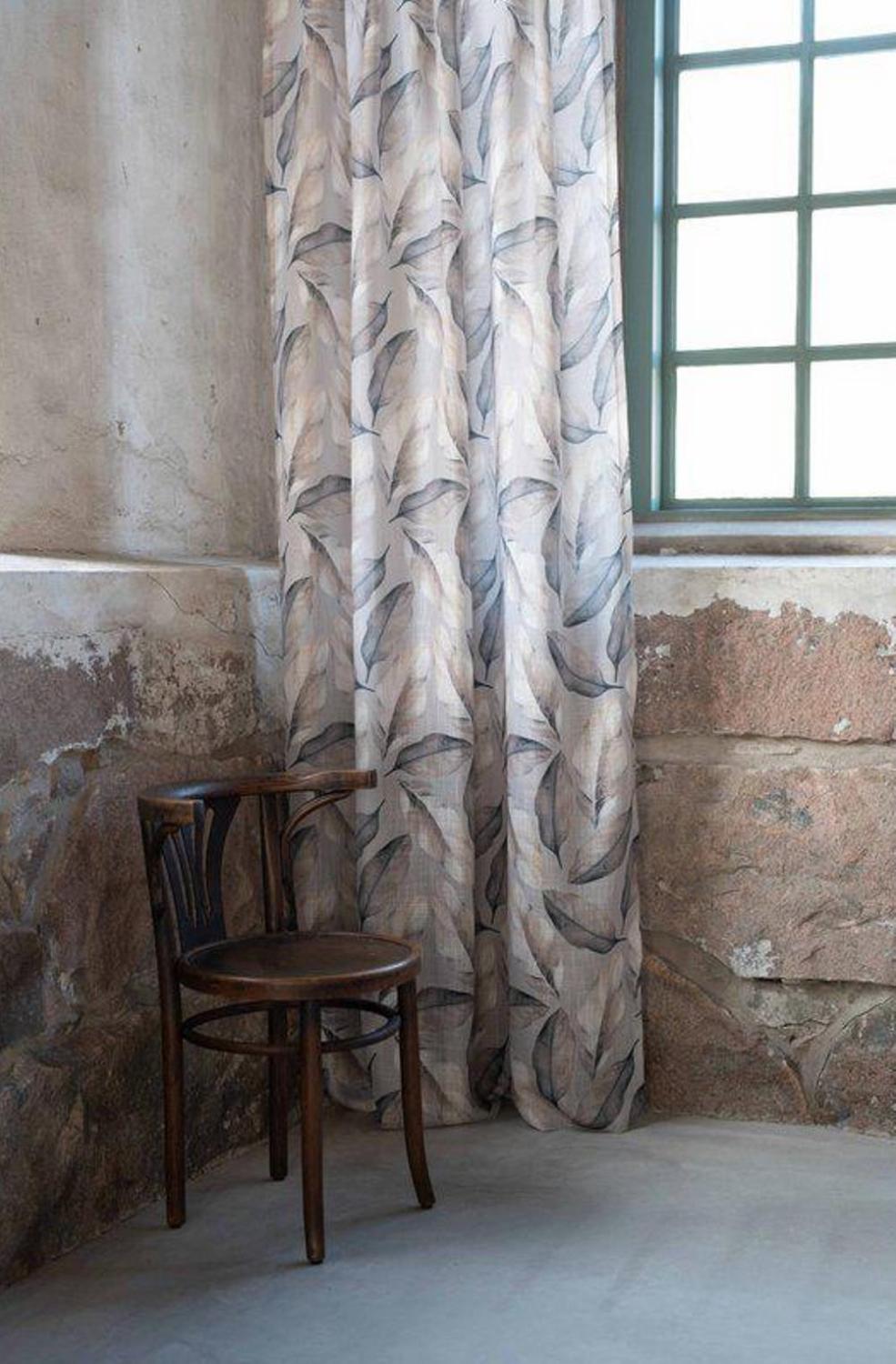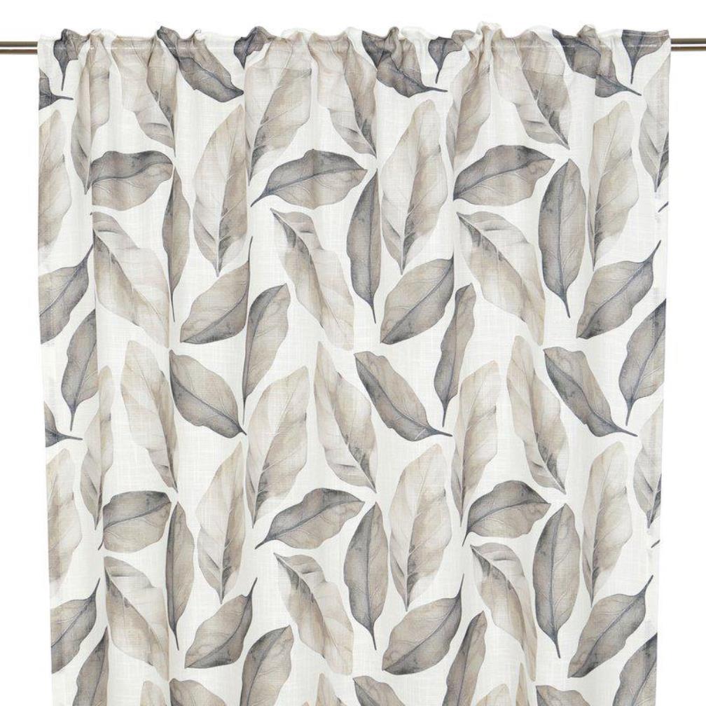 Gardin Ponza från Fondaco med ett vackert bladmönster på en offwhite botten, som ger rummet en naturlig och harmonisk känsla. Det tunna tyget filtrerar ljuset mjukt och skapar en ljus, luftig och hemtrevlig atmosfär. Gardinen har multiband som gör det enkelt att hänga upp. Längderna är ofållade i botten – använd gärna snabbfållningsband för enkel justering. Storlek: 135x250 cm. Tvättråd: Skontvätt 30°C. Säljes i 2-pack.