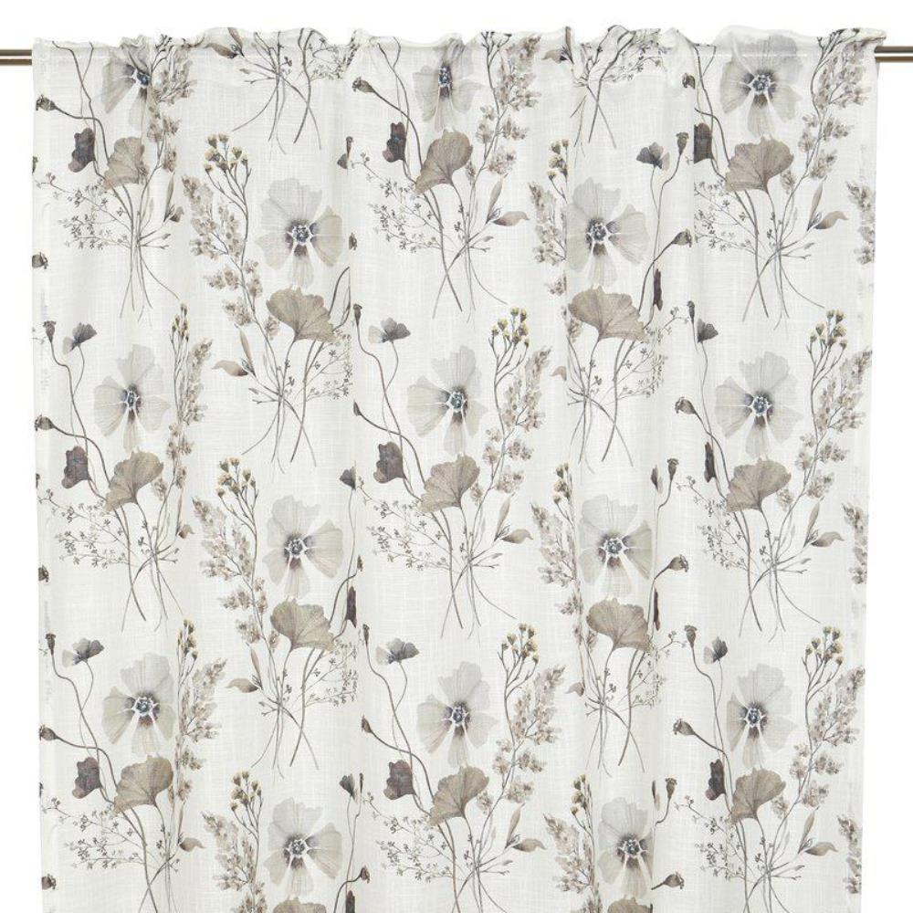Gardin Sabine från Fondaco har ett vackert blommönster på en offwhite botten som skapar en harmonisk känsla i rummet. Den släpper igenom ljuset och ger ett behagligt ljus och är perfekt för en ljus och inbjudande atmosfär. Gardinen har multiband som gör den enkelt att hänga upp. Längderna är ofållade i botten – använd gärna snabbfållningsband för enkel justering. Storlek: 135x250 cm. Tvättråd: Skontvätt 30°C. Säljes i 2-pack.