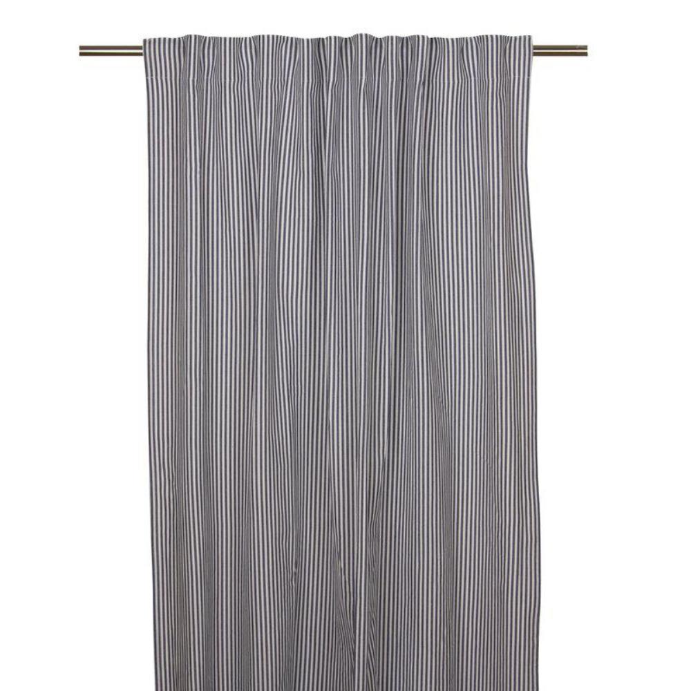 Gardin Oskar från Fondaco med ett klassiskt randigt mönster i en klassisk marinblå nyans. Det ger ett ljust och luftigt intryck som passar lika bra i det moderna hemmet som i den lantliga inredningen. Gardinen säljes i 2-pack. Storlek: 140x250 cm.