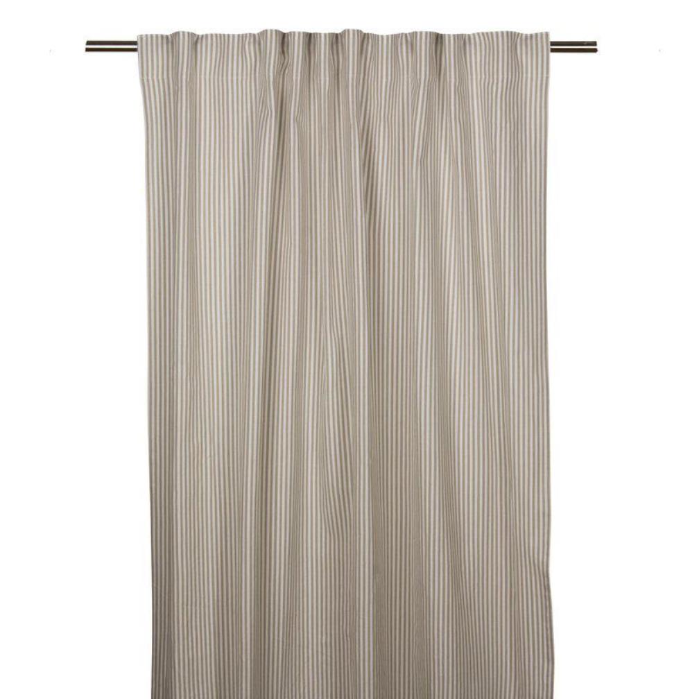 Gardin Oskar från Fondaco med ett klassiskt randigt mönster i en mjuk sandbeige ton. Det ger ett ljust och luftigt intryck som passar lika bra i det moderna hemmet som i den lantliga inredningen. Gardinen säljes i 2-pack. Storlek: 140x250 cm.