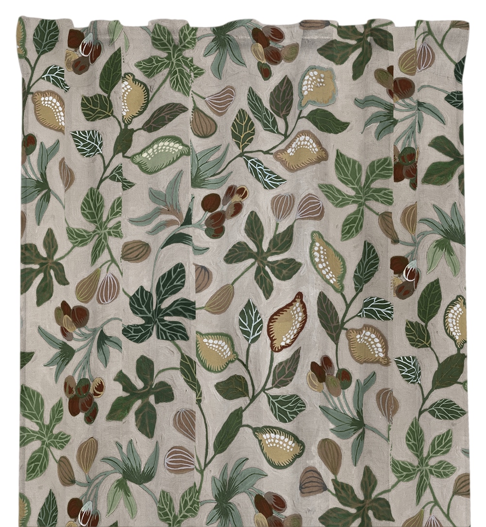 Gardin Palma från Redlunds har ett vackert mönster av olika frukter med gröna blad på en mjuk beige botten. De jordnära färgerna och det charmiga motivet ger en naturlig, varm och inbjudande känsla i rummet, samtidigt som designen känns tidlös och elegant. Gardinen tillför både färg och karaktär och är perfekt för alla rum där du vill skapa en välkomnande atmosfär.