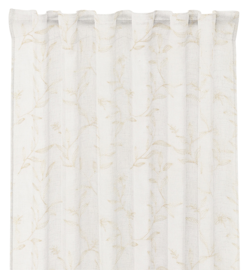 Multibandslängder Juliet från Redlunds kombinerar elegans och tidlös design med ett vackert broderat mönster av blommor och löv i vitt och linnebeige. Gardinerna tillverkade i 100% polyester med ett vackert fall och passar alla rum där du vill ha en lyxig och harmonisk känsla. Säljes i 2-pack. Storlek: 140x250 cm.
