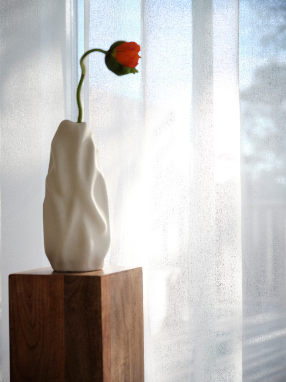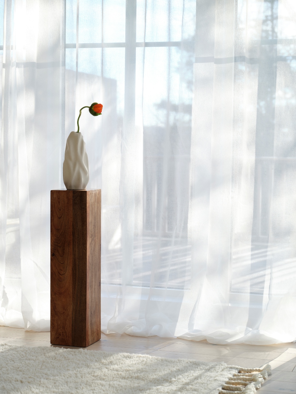 Rimy från Svanefors är en stilren multibandsgardin i ett skirt polyestertyg i en fin offwhite ton. Tyget har en vacker struktur med subtila färgskiftningar som ger ett levande uttryck, samtidigt som det silar ljuset på ett behagligt sätt. Långsidorna är fållade och nederkanten avslutas med en dekorativ overlocksöm. En elegant gardin som skapar en inbjudande känsla i rummet och passar perfekt i vardagsrum, sovrum eller matplats där du vill ha ett mjukt ljusinsläpp och en ombonad atmosfär. Storlek: 140x300cm. Säljes i 2-pack. Tvättråd: Maskintvätt 40°C.