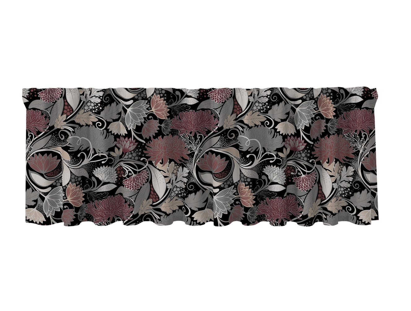 Gardinkappa Aurora från Redlunds har ett vackert, slingrande blommönster. Den dämpade färgskalan i vinrött och grått mot svart bakgrund skapar en elegant och ombonad känsla i rummet. Tyget har en diskret slubeffekt, som är en speciell vävteknik där tyget skapas med trådar i varierande tjocklek, vilket ger en unik och vacker struktur. Passar lika bra i köket som i vardagsrummet och ger hemmet en varm och inbjudande känsla.