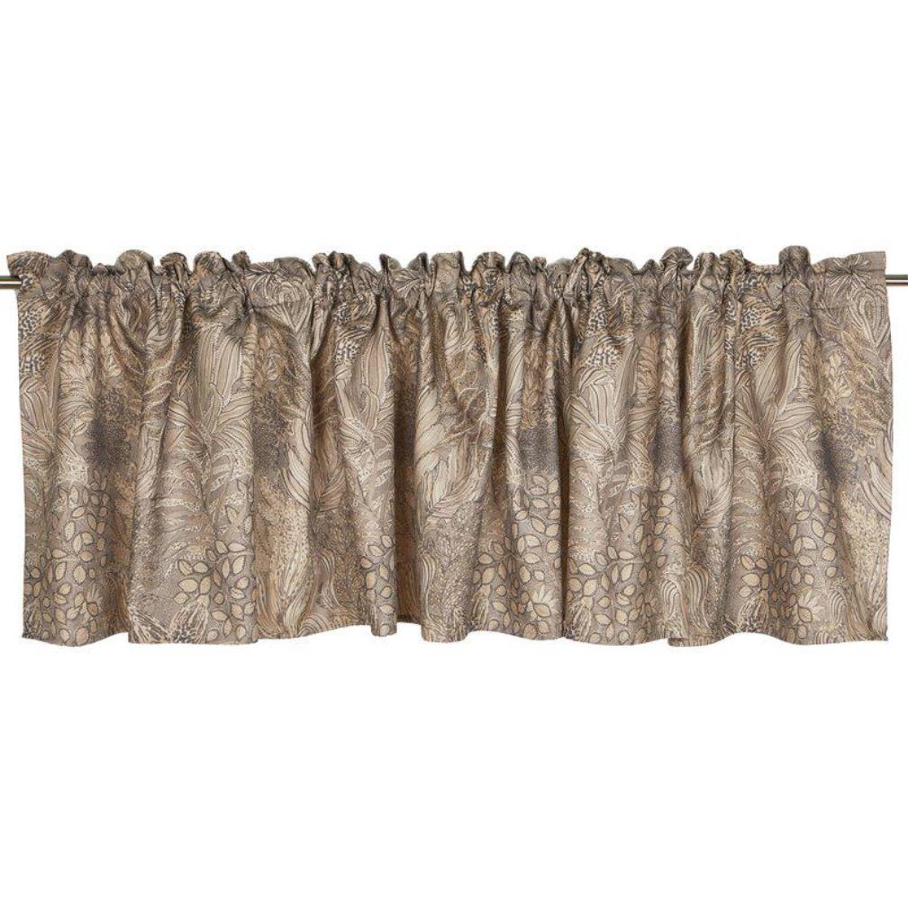 Gardinkappa Farah från Fondaco med ett vackert bladmönster som genast fångar blicken. De fina jordnära färgtonerna skapar ett harmoniskt intryck, samtidigt som mönstret tillför rummet en känsla av naturlig elegans och liv. Gardinkappan är tillverkad av 100% polyester och har multiband för enkel upphängning. Storlek: 55x250 cm. Tvättråd: Skontvätt 30°C.