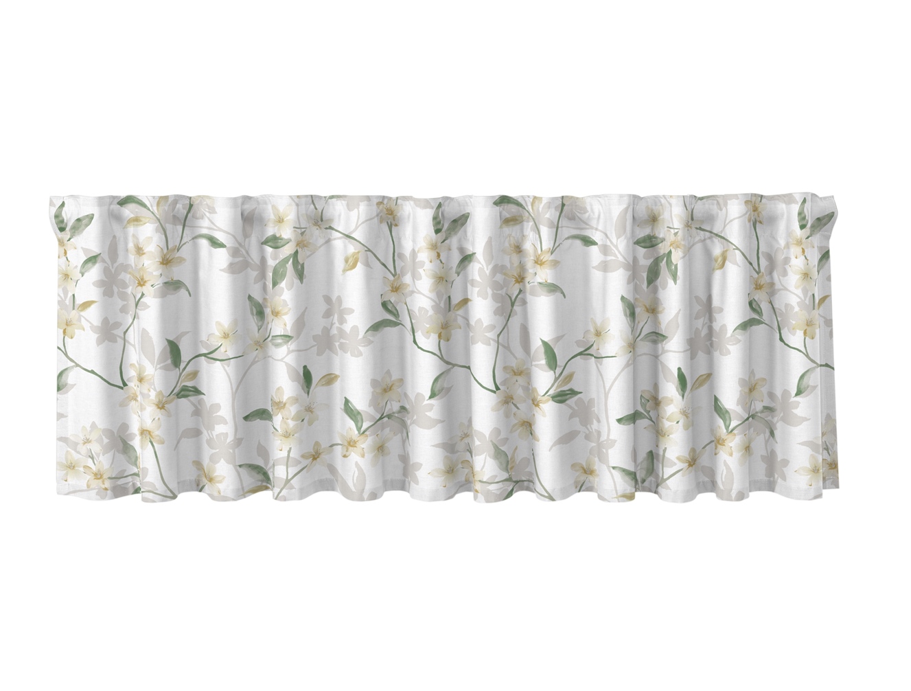 Gardinkappa Gertrud från Redlunds har ett vackert mönster med gula blommor och gröna blad på en ljus botten som ger rummet en harmonisk känsla. Garinkappan är tillverkade i 100% polyester och tryckta på tvåvägsslubb, en slubvävd kvalitet där trådar i varierande tjocklek skapar en unik struktur och en vacker slubeffekt. Storlek: 50x250 cm.