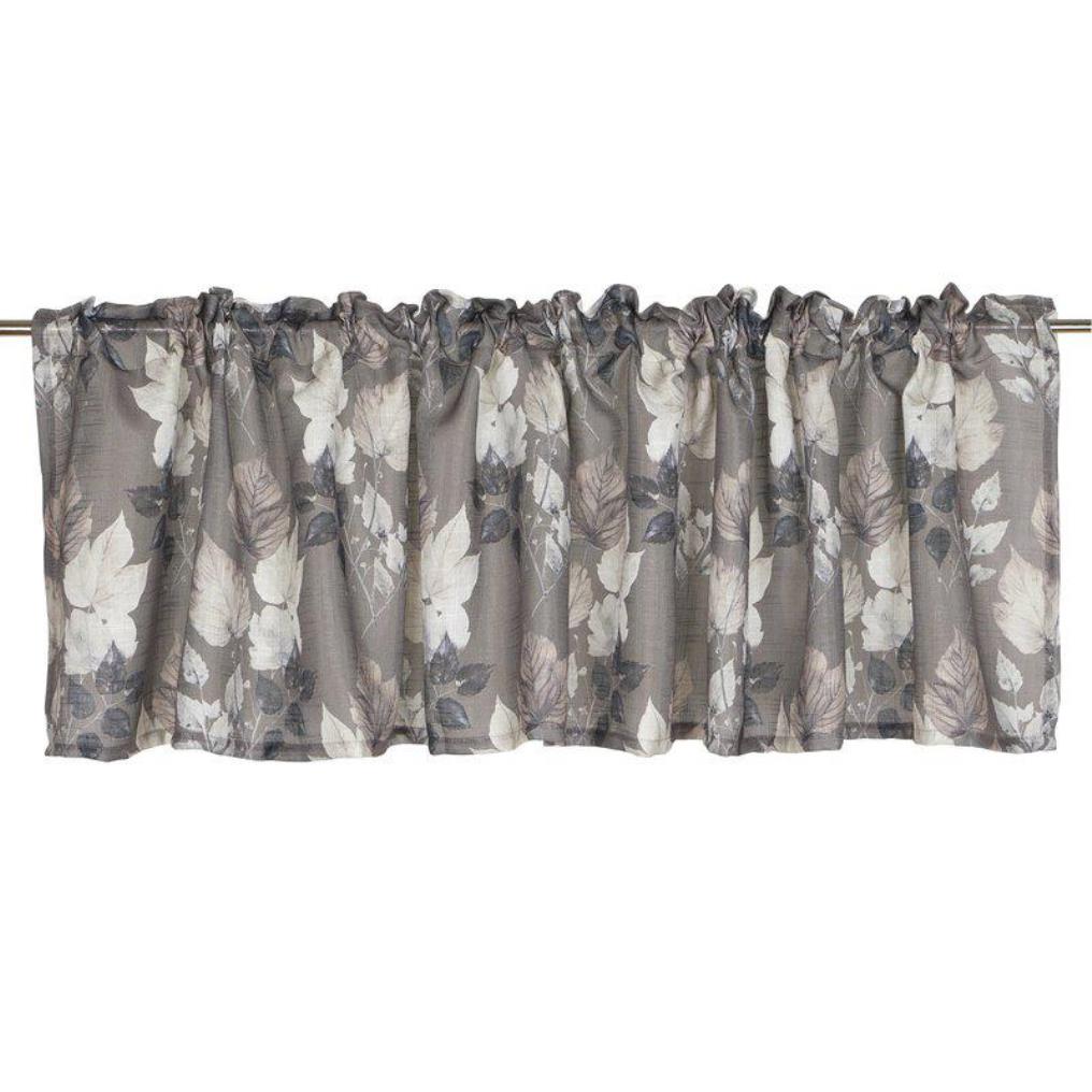 Gardinkappa Montana från Fondaco i ett mjukt och lätt tyg med ett elegant bladmönster på en nougatfärgad botten, tryckt i en detaljrik levande design. Det lätta och följsamma tyget filtrerar ljuset mjukt och skapar en ljus och hemtrevlig atmosfär. Gardinkappan är tillverkad av 100% polyester och har multiband för enkel upphängning. Storlek: 55x250 cm. Tvättråd: Skontvätt 30°C.