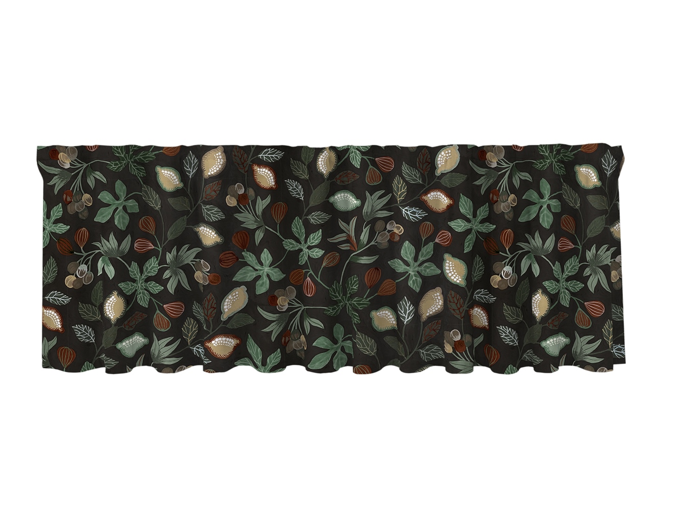 Gardinkappa Palma från Redlunds har ett vackert mönster av olika frukter med gröna blad på en svart botten. De jordnära färgerna och det charmiga motivet ger en naturlig, varm och inbjudande känsla i rummet, samtidigt som designen känns tidlös och elegant. Gardinen tillför både färg och karaktär och är perfekt för alla rum där du vill skapa en välkomnande atmosfär.