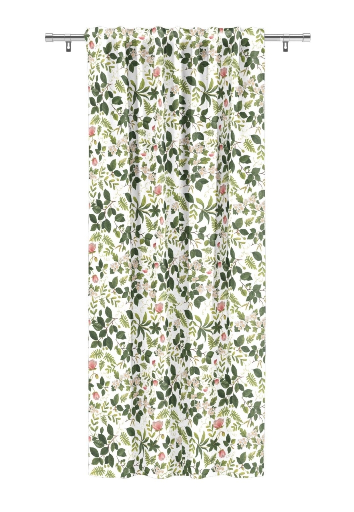 Blomsterlund från Arvidssons Textil är en vacker gardinlängd designad av Mialotta Arvidsson Mars. Den har ett elegant mönster av blommor och gröna blad på en ljus botten som ger en härlig och naturlig atmosfär. Gardinlängden har multiband, vilket gör den flexibel att hänga upp på olika sätt. Overlock nedtill. Storlek: 140x240 cm. Säljes i 1-pack.