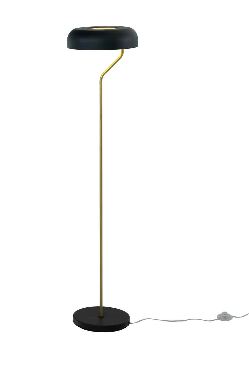Golvlampa Bremen från Aneta Lighting i svart metall och matt mässing har ett originellt och nyskapande uttryck. Ger en god nedåtriktad belysning samtidigt som en frostad skiva på ovansidan släpper igenom ett milt och filtrerat ljus. Ett snyggt och funktionellt val för både vardagsrum och sovrum. Rekommenderad ljuskälla: E27, max 40W. Ljuskälla ingår ej.