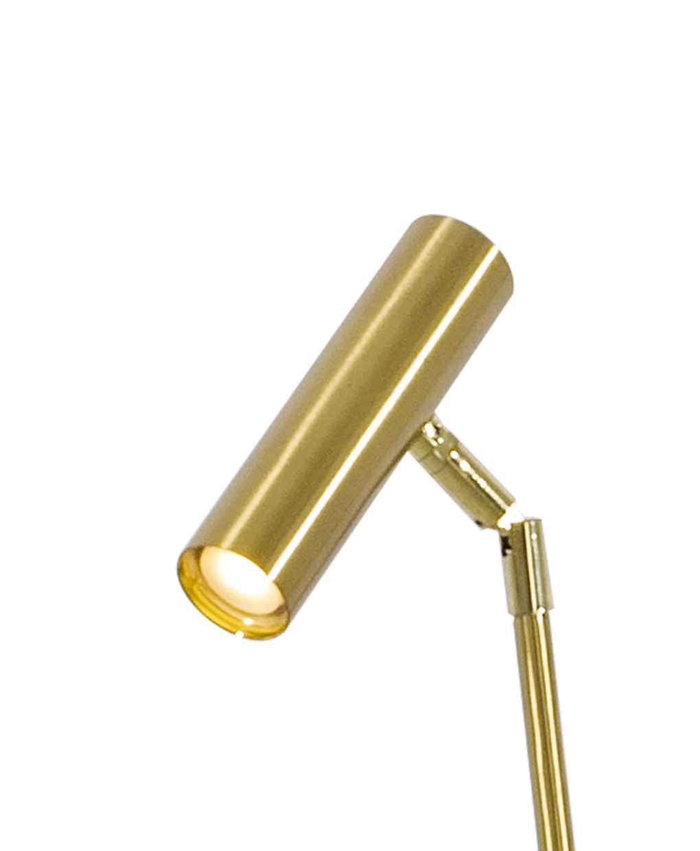 Golvlampa Artic från Aneta Lighting har en stilren design i matt mässing med integrerad LED-ljuskälla som sprider ett behagligt varmvitt ljus. Lampan har dimmerfunktion direkt på armaturen, och både huvud och fot är justerbara för att enkelt rikta ljuset dit du vill. Den levereras med en 2 meter sladd. Armaturens höjd är 140 cm, bredden är 22 cm och längden är 44 cm. Lampan är dimbar och en LED-ljuskälla med en maxeffekt på 6W ingår.