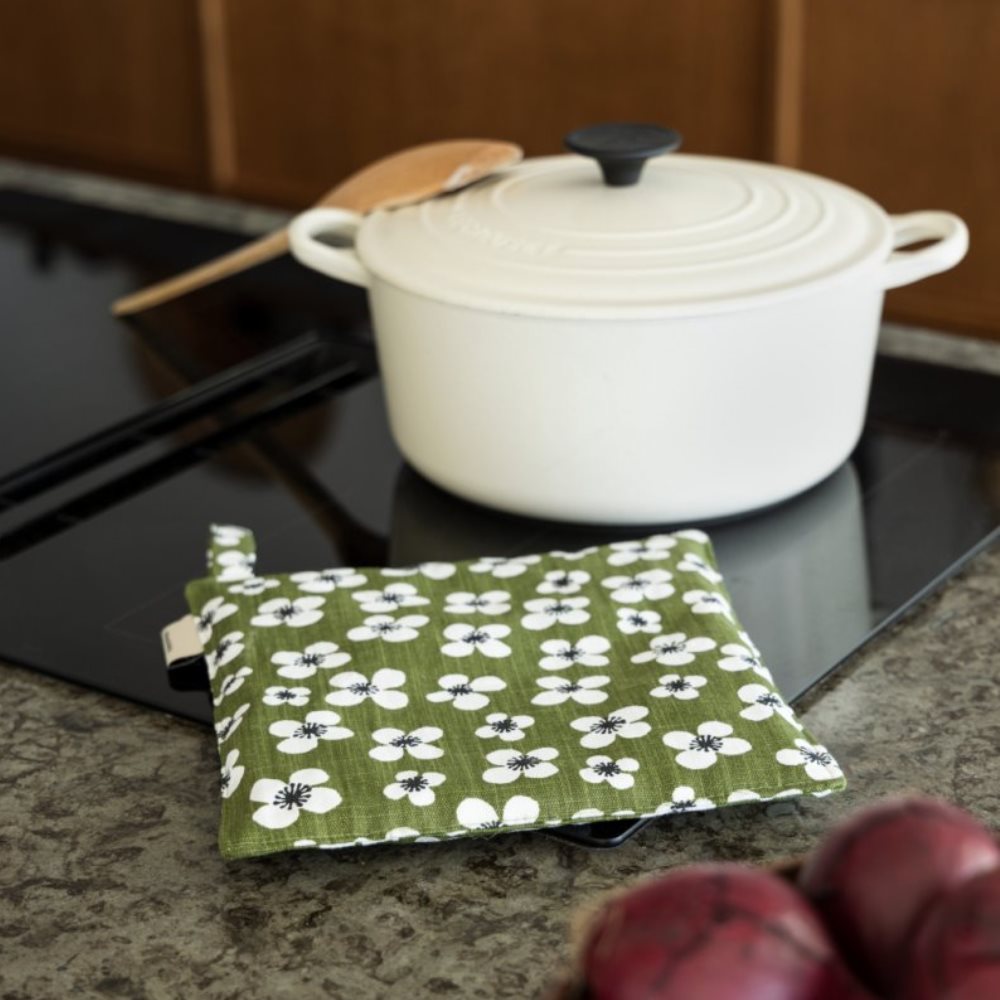 Grytlapp Belle Amie, 23x23 cm från Almedahls i 100% bomull är en slitstark och värmeskyddande grytlapp i mörkgrönt med klassiskt mönster. Perfekt att använda när du hanterar varma kastruller och ugnsformar. Grytlappen är quiltad för extra skydd och har en praktisk ögla för upphängning.