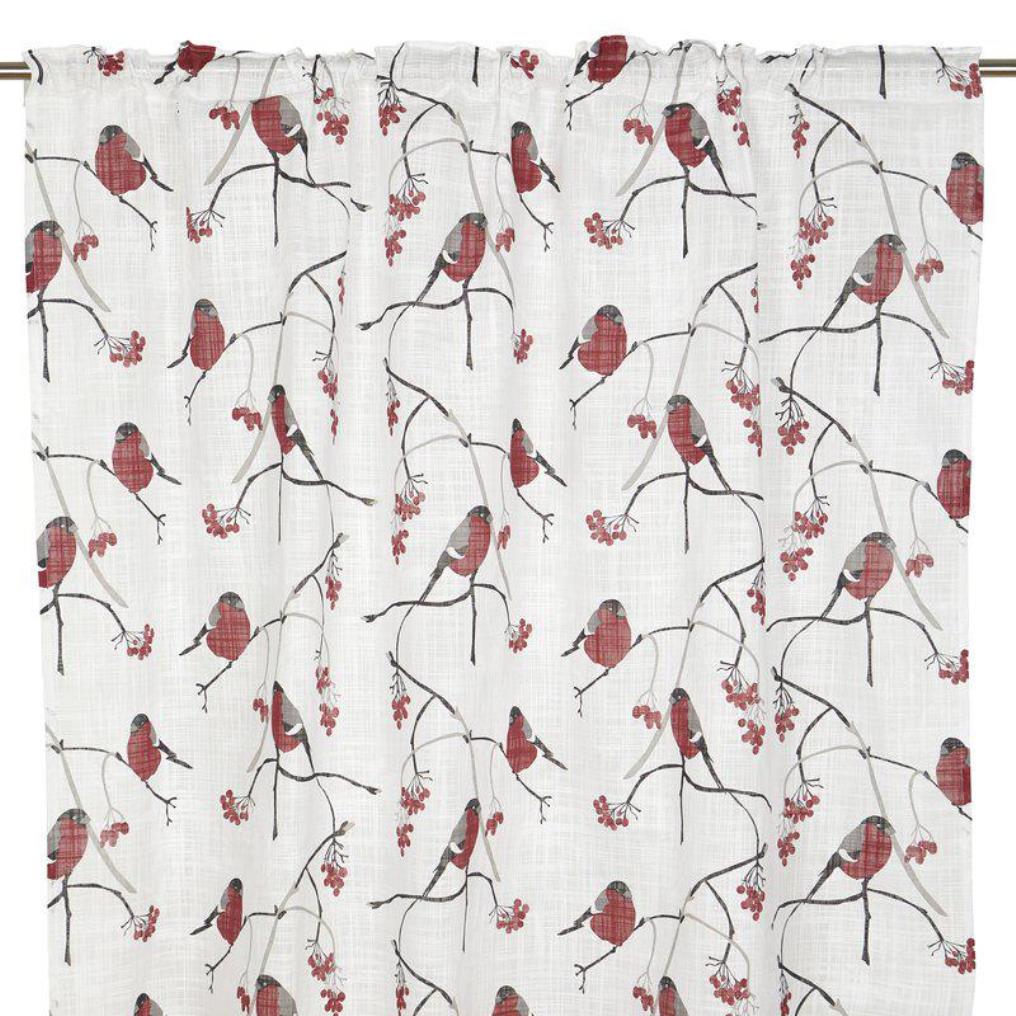 Gardin Domherre från Fondaco i mjuk bomullsslub med ett charmigt mönster av röda domherrar på en vit botten som är perfekt för att skapa en hemtrevlig och vintrig stämning i ditt hem. Det levande slubtyget har en naturlig struktur som tillför gardinen ett rustikt och genuint uttryck. En perfekt detalj för mysiga vinterdagar! Multiband gör den enkel att hänga upp. Längderna är ofållade i botten, använd gärna snabbfållningsband för att enkelt justera längden efter behov och få en perfekt passform. Tvättråd: Skontvätt 40°C. Storlek: 135x245 cm. Säljes i 2-pack.