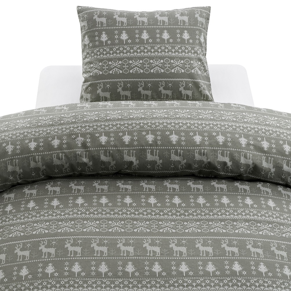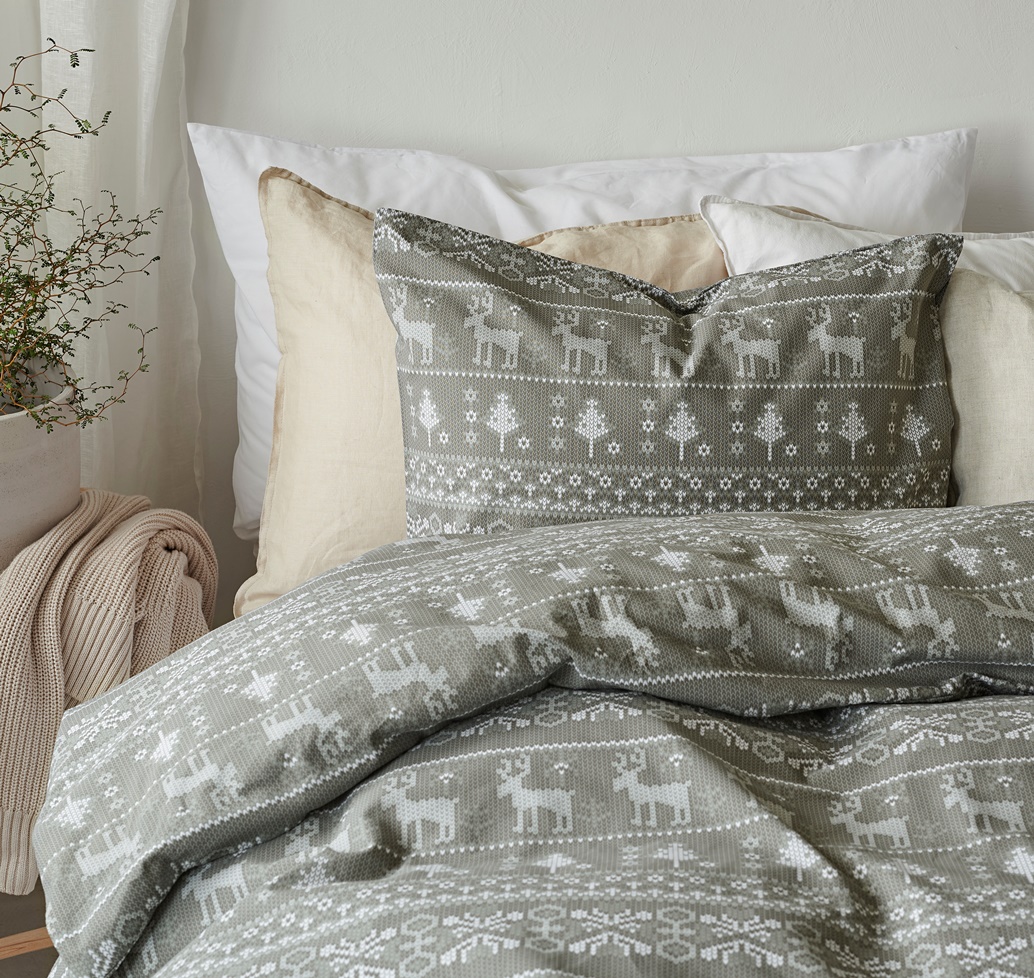 Julpåslakan Walle med örngott från Borganäs Of Sweden sprider en härlig julstämning med sitt charmiga mönster av renar och granar. Det vintriga motivet mot en djupgrön botten skapar en mysig och ombonad känsla i sovrummet och är perfekt för årets kallare månader. Det är tillverkat av mjuk och behagligt bomull med en trådtäthet på 144 TC. Påslakanet har praktiska hörnhål för enkel bäddning, och örngottet med kuvertöppning.
