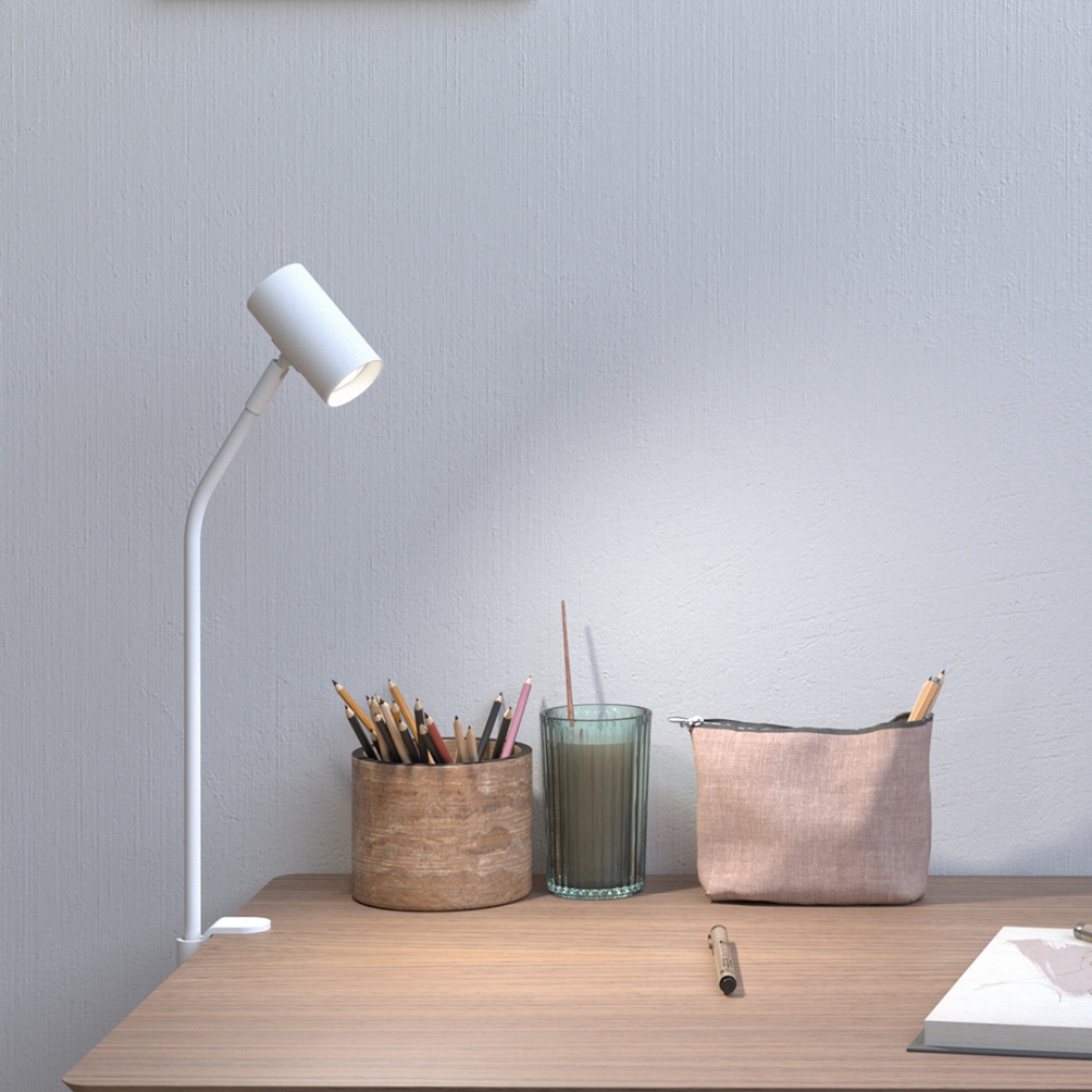 Tyson bordslampa från Belid i vit metall kombinerar funktion och stil. Lampan fästs smidigt på bordsskivan och har en justerbar lampskärm som gör det enkelt att rikta ljuset dit det behövs och är idealisk för läsning, studier eller arbete. Den praktiska on/off-knappen sitter direkt på lamphuvudet för snabb och smidig användning.