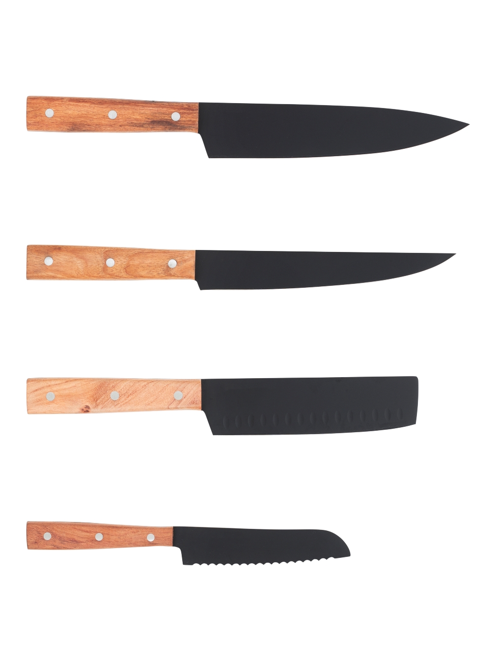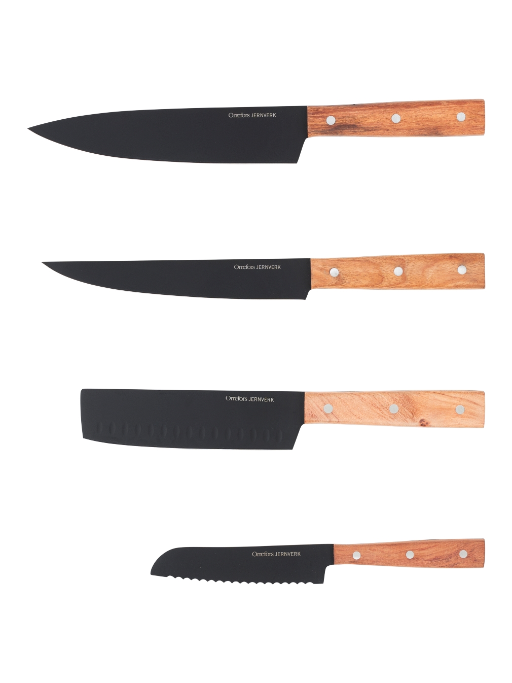 - Mått: Kockkniv 20 cm, filékniv 20 cm, santokukniv 15 cm, tomatkniv 12 cm