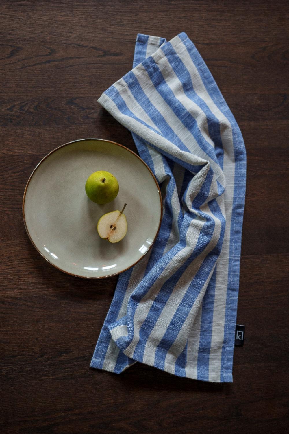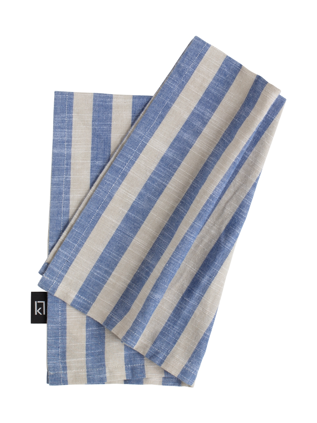 Kökshandduk från Kosta Linnewäfveri som är tillverkad i 100% bomull med en snygg linnekänsla som ger ett naturligt och tidlöst uttryck. De klassiska ränderna i blått passar lika bra i det moderna köket som i det lantliga, och gör kökshanddukarna både dekorativa och praktiska i vardagen. Storlek: 40x60 cm.