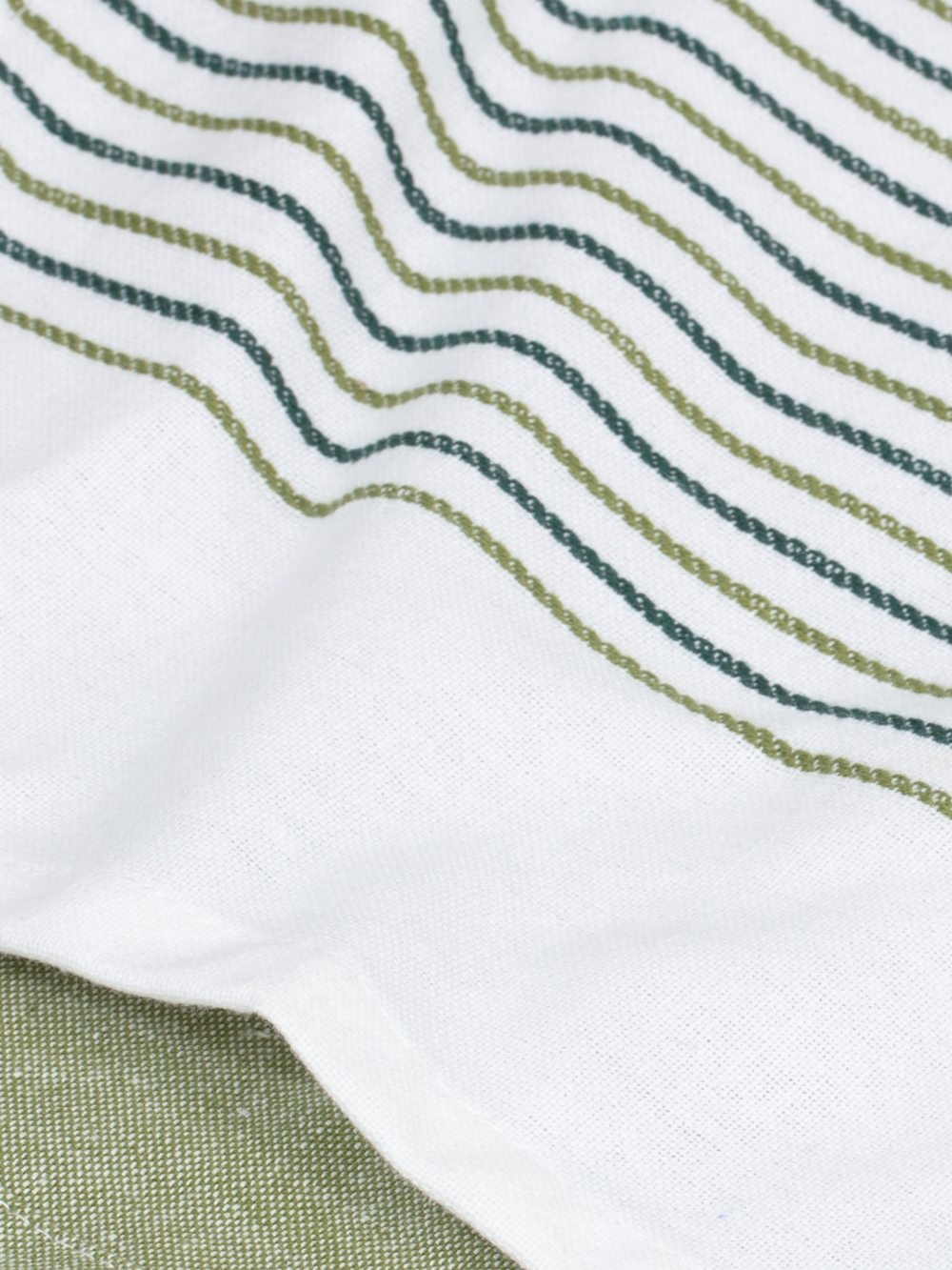 Kökshandduk Stripe från Kosta Linnewäfveri är tillverkad i återvunnet material och har ett elegant randigt mönster i blått och grönt. De klassiska ränderna ger ett livfullt men stilrent uttryck som passar i både moderna och lantliga kök.