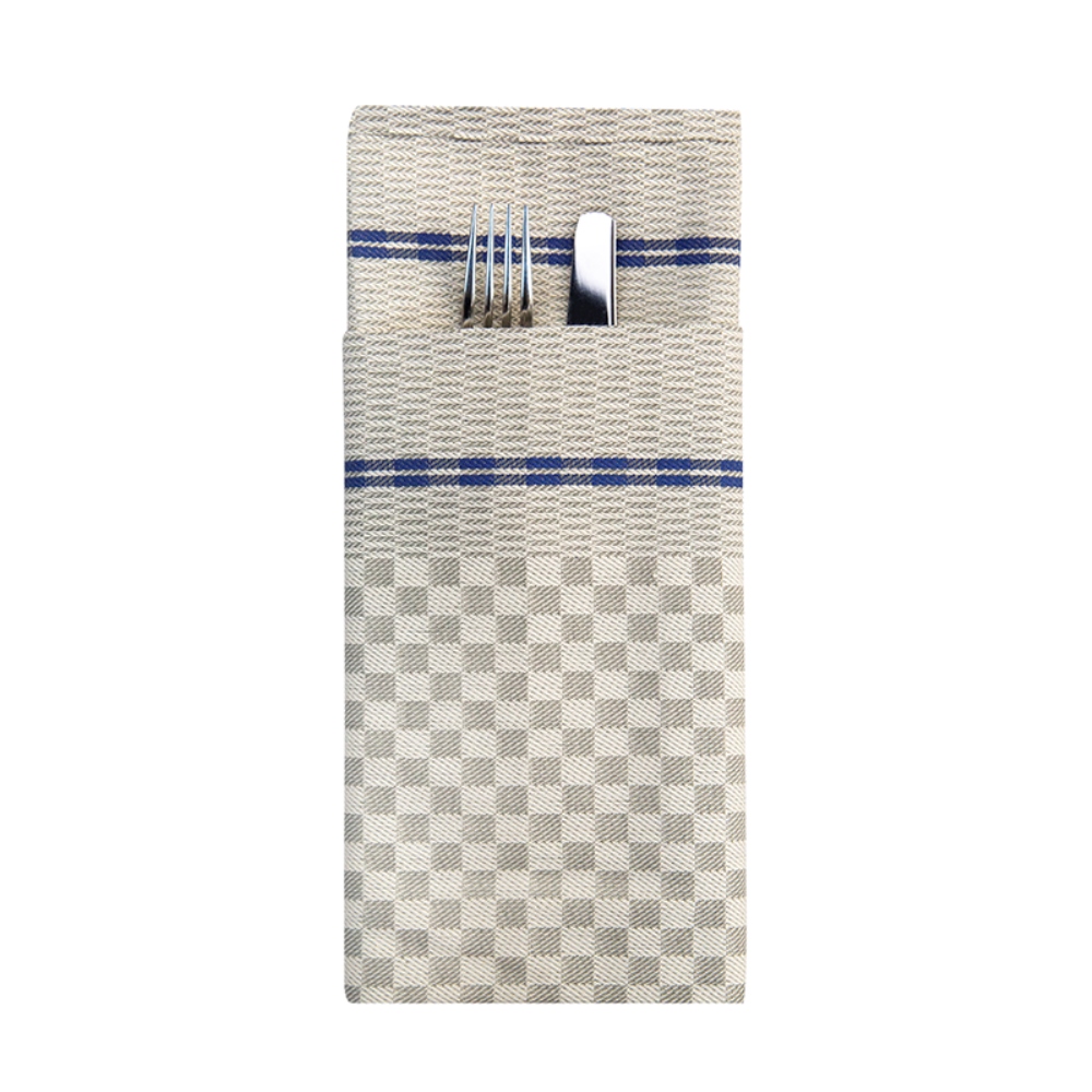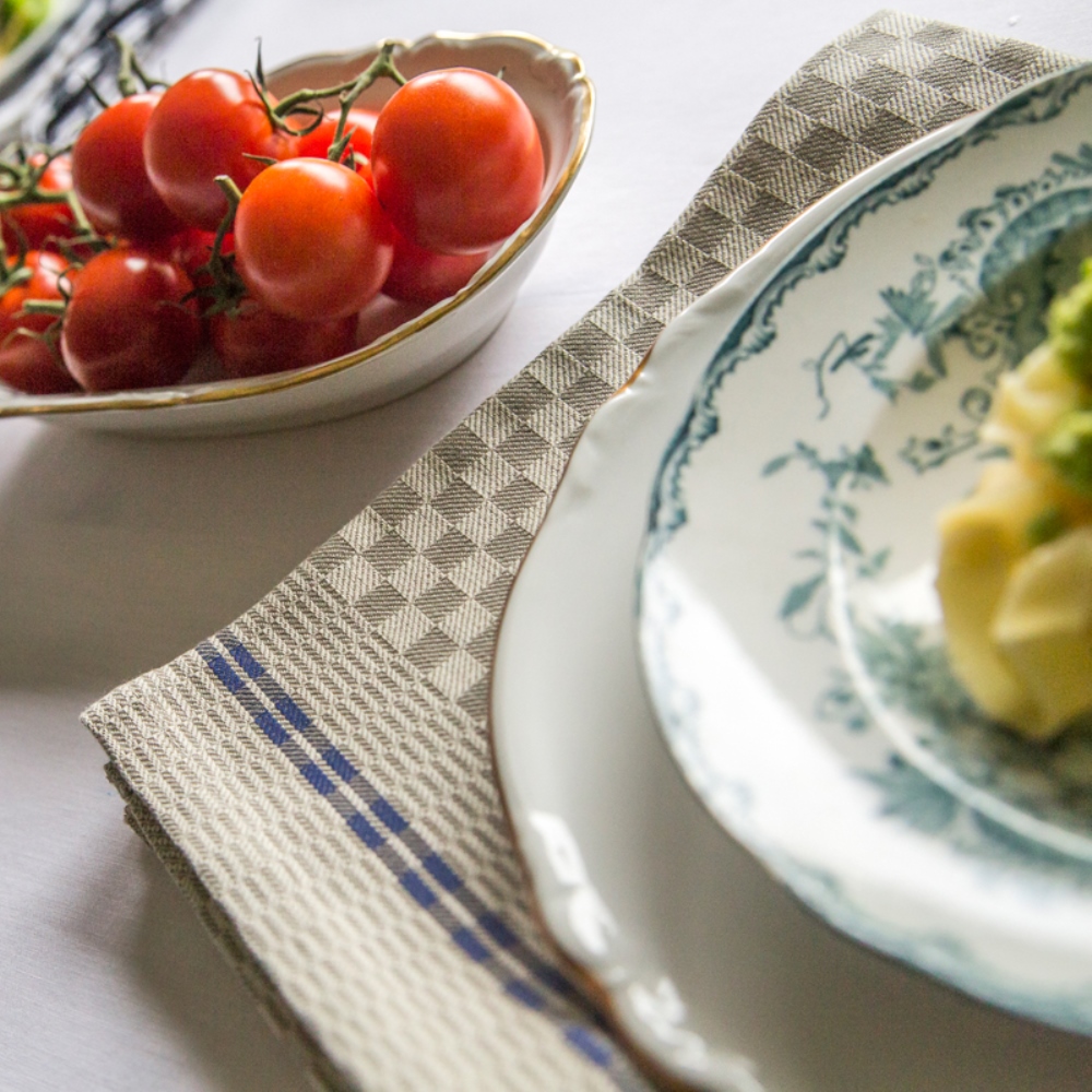 Kökshandduk Alice från Fritz Magnus är tillverkad i naturfärgad bomull med ett klassiskt rutmönster och en dekorativ rand i blått. Den har en rustik, lantlig känsla och fungerar lika fint som servett vid dukningen som som kökshandduk i vardagen. Dessutom har den praktiska hängare på båda kortsidorna för enkel upphängning. Storlek: 50x70 cm.