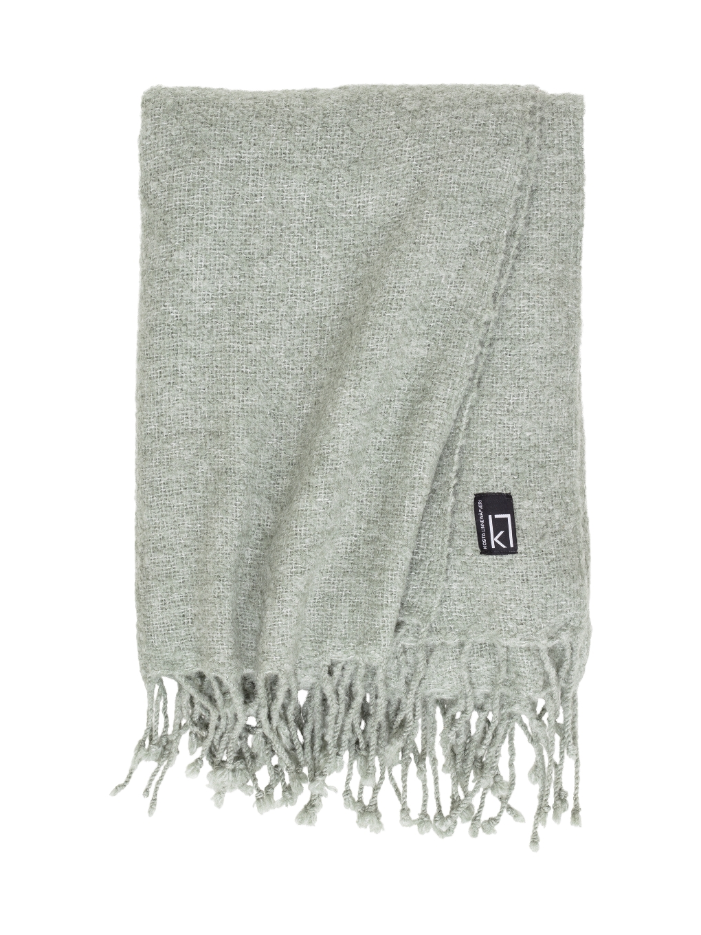 Pläd Sjövallen från Kosta Linnewäfveri är en grön pläd med vackra fransar på kortsidan som är fin att lägga dekorativt på en soffa eller säng.