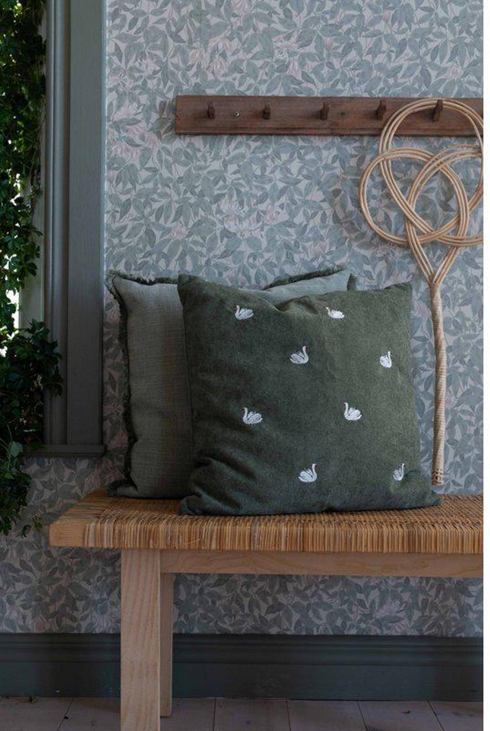 Kuddfodral Svan från Fondaco har ett charmigt mönster med små svanar på en grön botten. Det lena tyget är både bekvämt och dekorativt och ger rummet en varm och ombonad känsla. En fin detalj som ger soffan eller sängen ett personligt och inbjudande uttryck. Storlek: 48x48 cm.