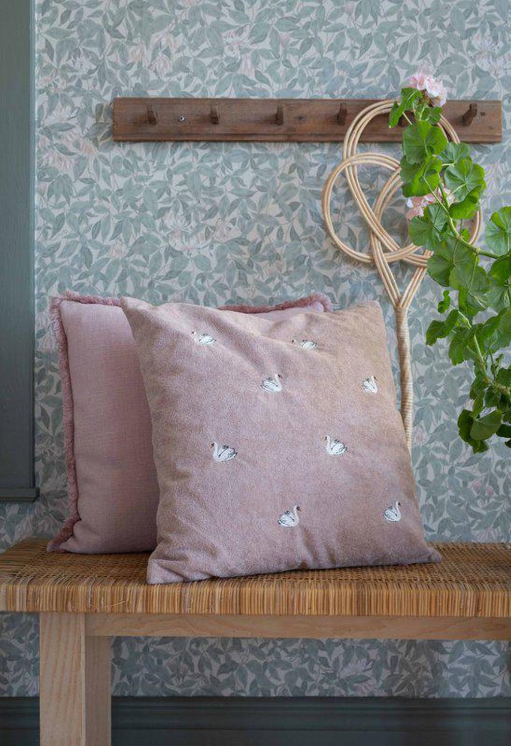 Kuddfodral Svan från Fondaco har ett charmigt mönster med små svanar på en rosa botten. Det lena tyget är både bekvämt och dekorativt och ger rummet en varm och ombonad känsla. En fin detalj som ger soffan eller sängen ett personligt och inbjudande uttryck. Storlek: 48x48 cm.