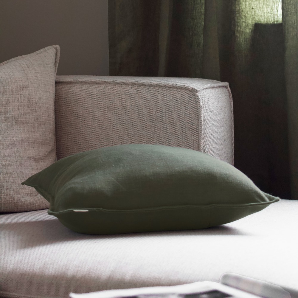 Kuddfodral Julie från Svanefors är ett tidlöst linnekuddfodral tillverkat i en mjuk, lätt tumlad kvalitet. Den gröna färgen ger en varm och naturlig känsla som passar perfekt i både soffan, fåtöljen eller i sängen.