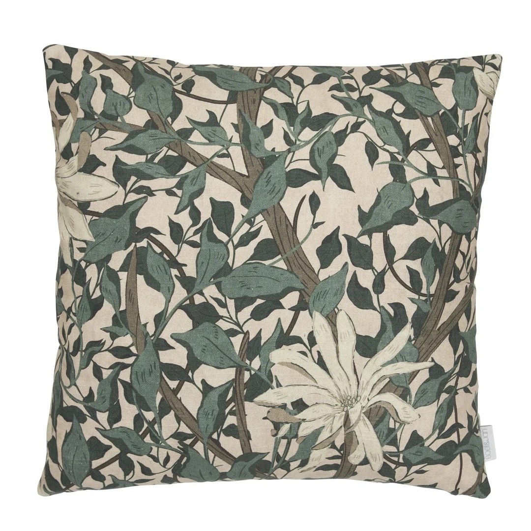 Kuddfodralet Maja från Boel & Jan är tillverkat i 100% mjuk bomull och pryds av ett vackert grönt blommigt mönster. Med sin glada och livfulla design ger det hemmet ett upplyftande och dekorativt tillskott. Storlek: 45x45 cm.