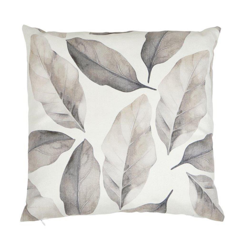 Kuddfodral Ponza från Fondaco med ett vackert bladmönster på en offwhite botten, som ger en naturlig och harmonisk känsla. Baksidan är enfärgad och matchar mönstret, som ger en fin balans mellan mönster och enkelhet. Storlek: 45x45 cm.