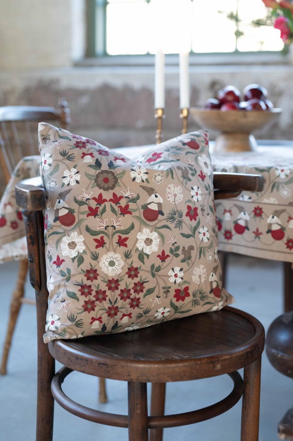 Kuddfodral Julefrid från Fondaco i 100% bomull med ett vackert rött julmönster som ger rummet en varm och stämningsfull känsla. Perfekt för soffan, fåtöljen eller sängen när du vill göra hemmet lite extra ombonat. Storlek: 45x45 cm.