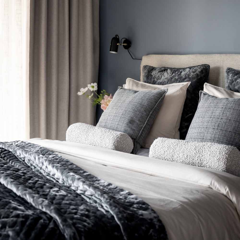 Kuddfodral Cia från Svanefors är ett elegant grått kuddfodral i quiltad sammet med diskreta broderade prickar. Baksidan är i sammet i samma nyans, vilket ger ett enhetligt och stilrent uttryck som passar i hemmets alla rum.