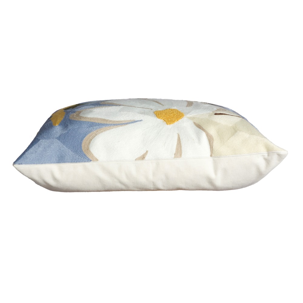 Kuddfodral Signe från Svanefors är tillverkat i en blandning av polyester och bomull och har ett vackert blommigt mönster i en akvarellinspirerad stil som ger rummet ett levande och elegant uttryck. Det broderade mönstret på framsidan skapar en fin struktur och tillför en lyxig, dekorativ känsla. Baksidan är enfärgad.