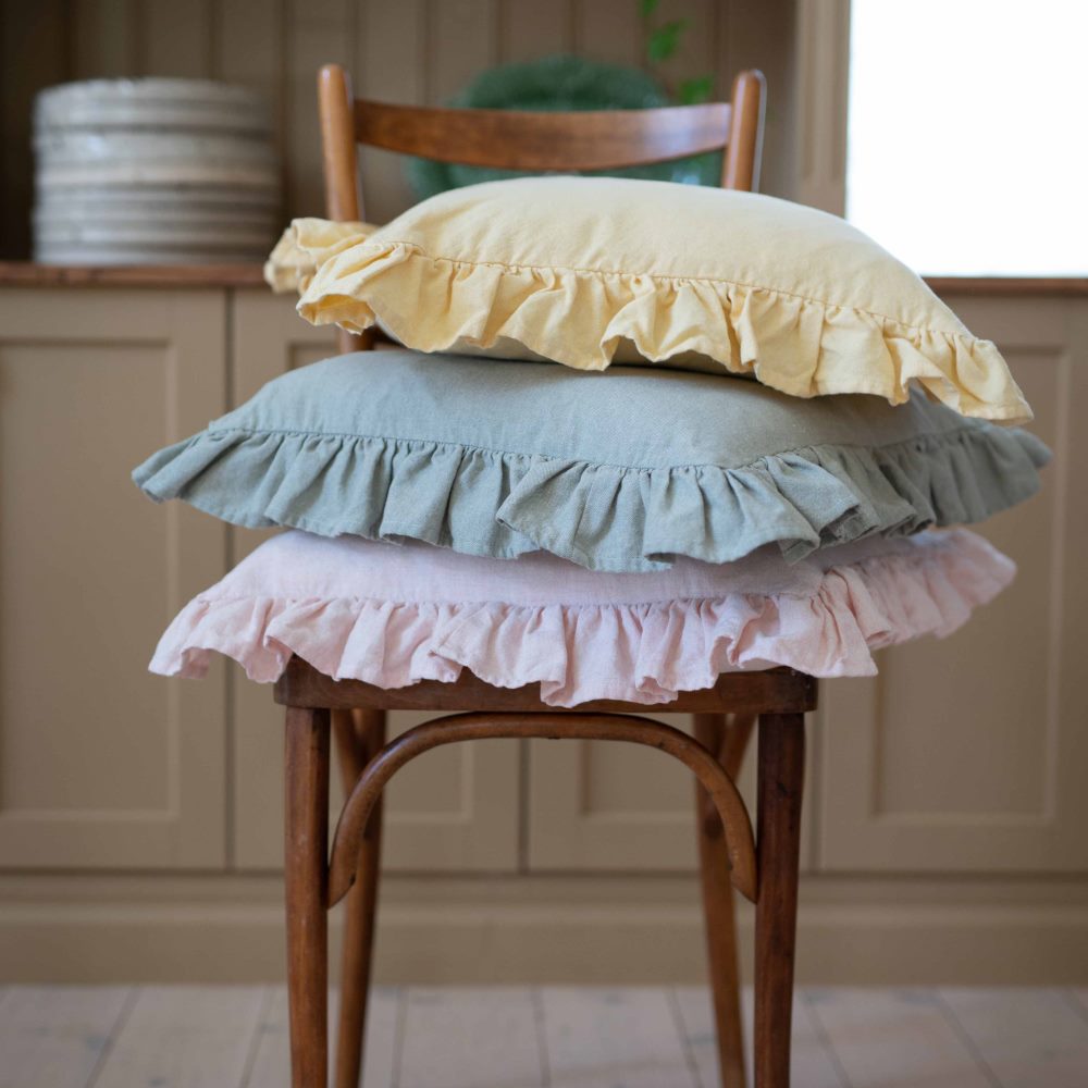Kuddfodral Vide från Fondaco i gul färg är tillverkat av återvunnen bomull och polyester och ger ett hållbart och tidlöst uttryck. Tyget har en vacker struktur med linnekänsla som ger ett mjukt och harmoniskt uttryck. Den dekorativa volangen runtom blir en charmig detalj som ger kuddfodralet karaktär och passar lika fint i sovrummet som i vardagsrummet. Storlek: 45x45 cm.