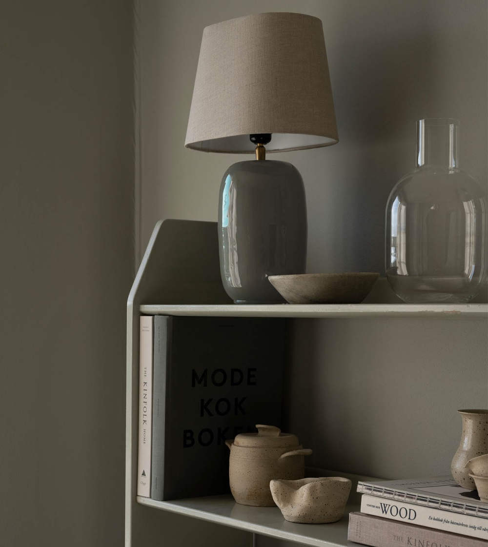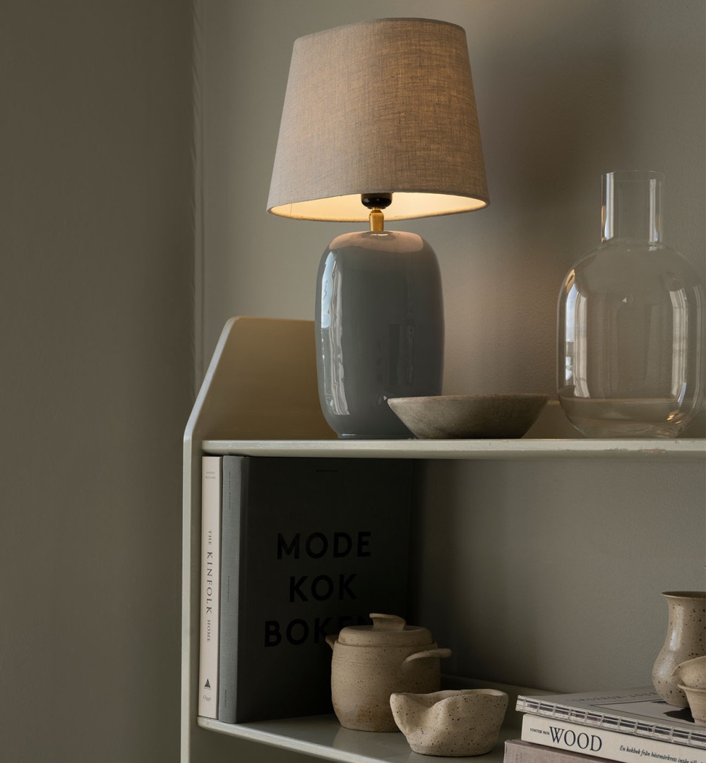 Lampfot Emily från Watt & Veke är en elegant bordslampfot som förenar modern design med en nostalgisk retrokänsla. Den har en blank, emaljerad yta i en dämpad grön ton som ger den ett exklusivt uttryck. Lampan är förfinad med en vacker borstad gulddetalj och en matchande textilkabel, vilket förstärker den lyxiga känslan.