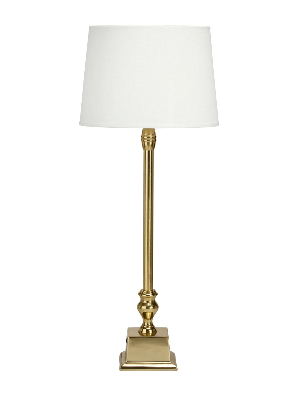Lampfot Linné från PR Home har en tidlös och elegant design i metall med en stilren fyrkantig fot som passar perfekt i en klassisk inredning. Den guldfärgade ytan ger ett varmt och lyxigt intryck och lampfoten passar lika bra i vardagsrummet som i sovrummet eller hallen. Den levereras med en 1,8 meter svart plastsladd med strömbrytare. Höjd 50 cm och bredd och djup 11 cm. Till Linné rekommenderas en ljuskälla med E27 sockel, max 40W. Ljuskälla ingår ej.