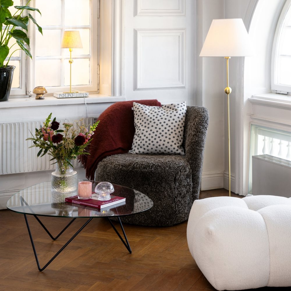 Lampfot Astrid från Globen Lighting har en elegant design i mässingsfärgad metall. Den lilla dekorativa kulan ger lampfoten ett unikt uttryck och adderar karaktär. Astrid passar lika fint på ett sidobord som i fönstret eller på nattduksbordet, en stilren detalj som sprider stämningsfullt ljus.