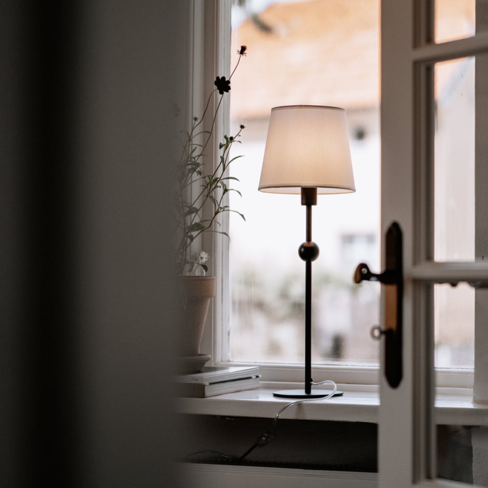 Bordslampfot Astrid från Globen Lighting har en elegant design i svart metall. Den lilla dekorativa kulan ger lampfoten ett unikt uttryck och adderar karaktär. Astrid passar lika fint på ett sidobord som i fönstret eller på nattduksbordet, en stilren detalj som sprider stämningsfullt ljus.