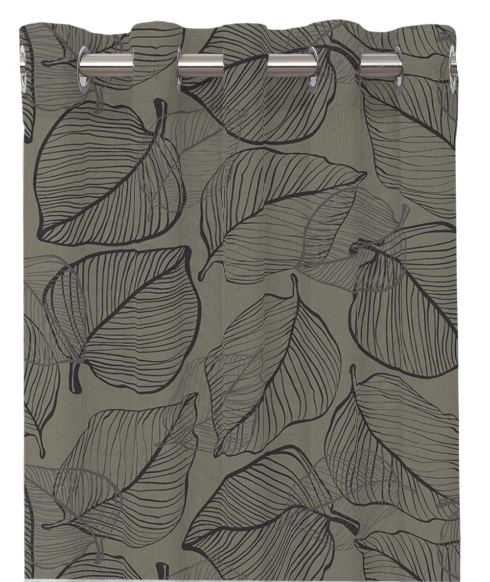 Gardin Hugo från Redlunds har ett härligt mönster av stora, grafiska löv med fina, mörka linjer på en khakifärgad botten. Det stilrena bladmotivet skapar en elegant och trendig känsla i rummet, samtidigt som de jordnära tonerna ger värme och en harmonisk atmosfär. Perfekt för vardagsrum eller sovrum där du vill ha en modern men ändå tidlös och inbjudande detalj.
