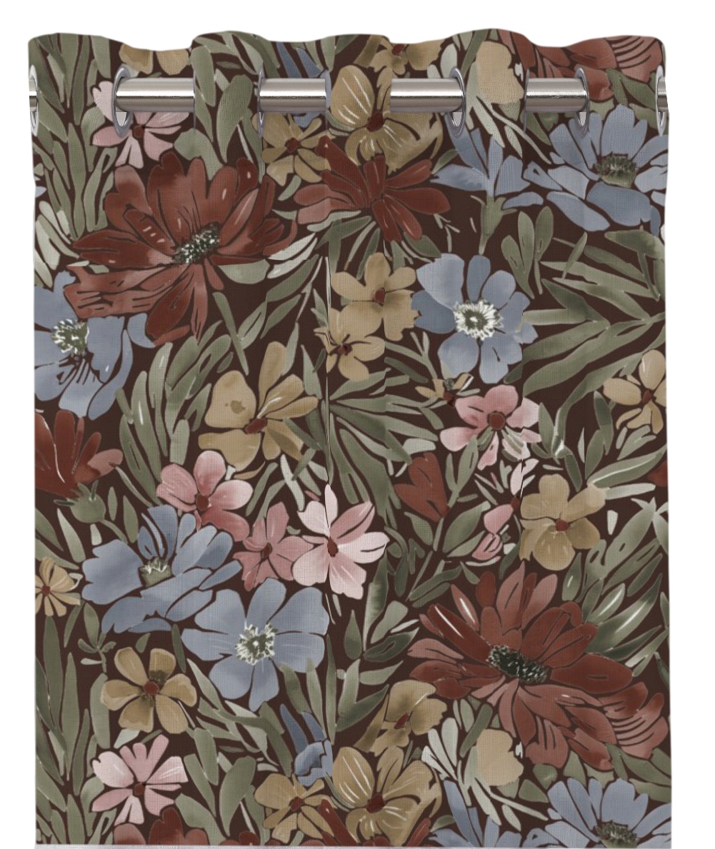 Öljettgardin Ruby från Redlunds har ett vackert blommönster i rostbrunt, blått, gulbeige och rosa, med gröna blad som skapar liv i designen. Den är både ombonad och uttrycksfull och ger rummet värme och karaktär. Perfekt för en mysig och elegant känsla under höst- och vintermånaderna.