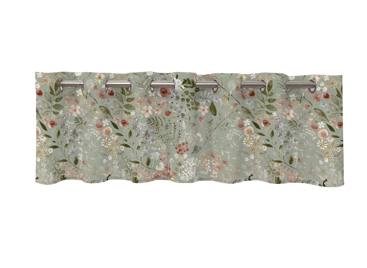 Öljettkappa Ida från Redlunds har ett vackert blommönster i pastellfärger mot en grön botten som skapar en ombonad känsla. Öljettkappan är tillverkad i ett tyg med en elegant slubeffekt, en speciell vävteknik där trådar av varierande tjocklek ger en levande, naturlig struktur med en unik och exklusiv känsla. Storlek: 50x250 cm.