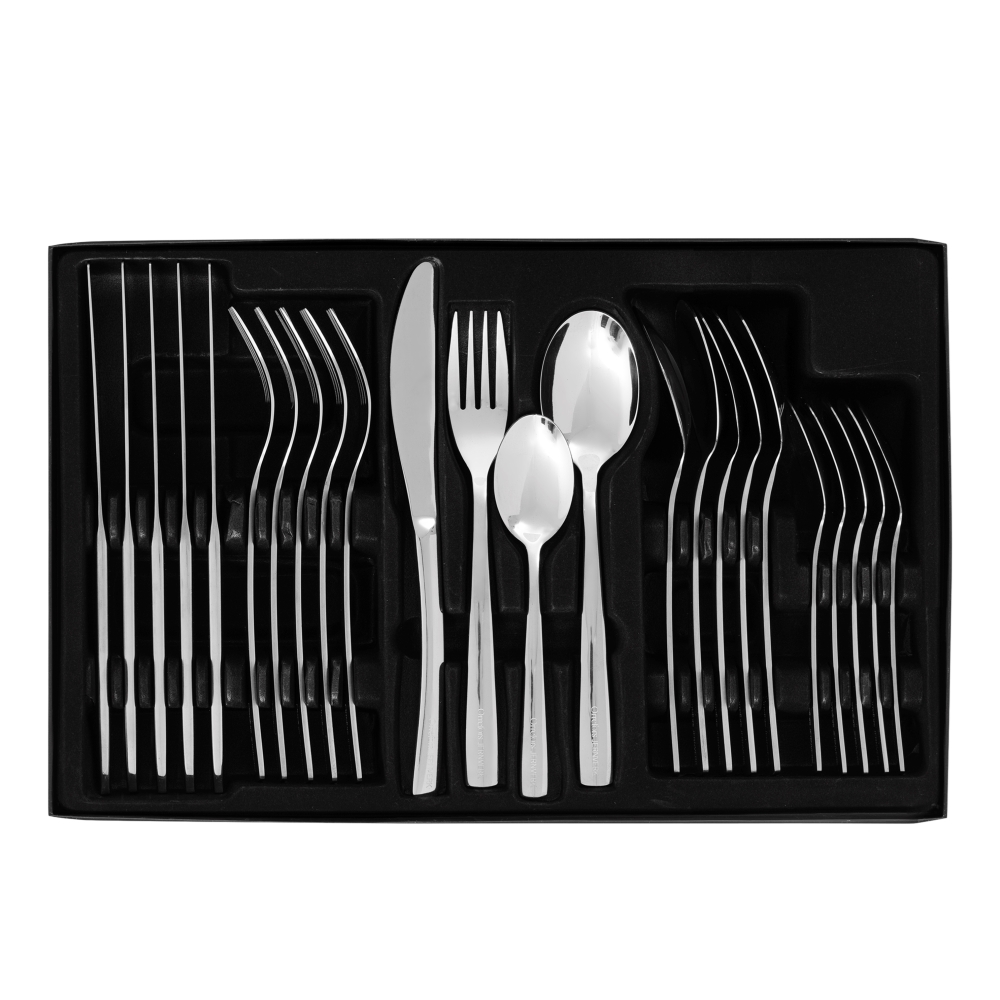 Bestickset från Orrefors Jernverk i en stilren och tidlös design. Setet består av 24 delar med gafflar, knivar, skedar och teskedar och är perfekt för både vardag och fest. Ett komplett bestickset som kombinerar funktion och elegans och passar lika bra till det dukade middagsbordet som till enklare måltider.